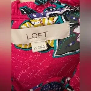 LOFT Pink and Green Floral Dress with ruffle sleeves Size XS