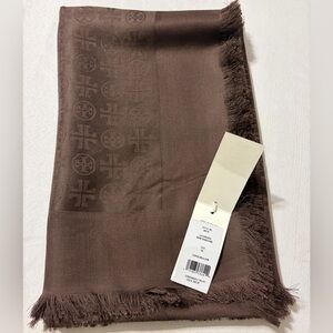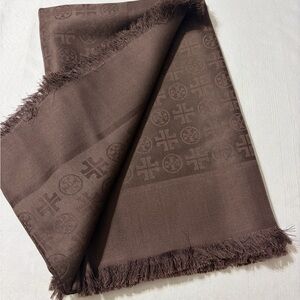 Dark Roast scarf with fringe. Features Tory Burch logo Pattern