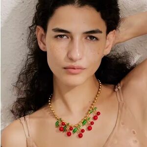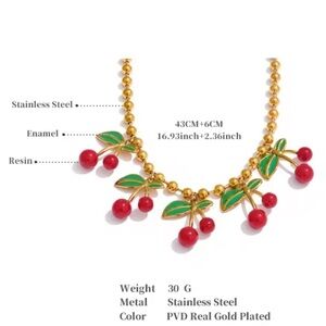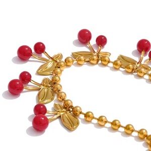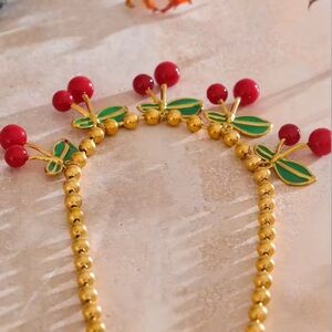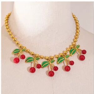 Elegant gold necklace featuring vibrant red cherry accents. Perfect for adding a playful touch to any outfit.