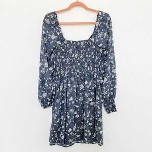 Hollister Womens Dress Size M Blue Floral Smocked Long Sleeve Cottagecore Boho