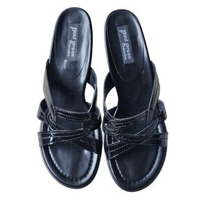 Paul Green Leather Munchen Low Kitten Heel Sandals Black Y2K Size 6