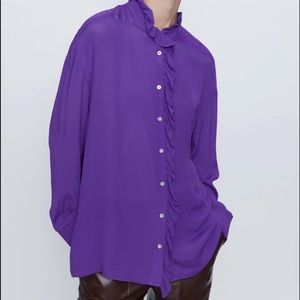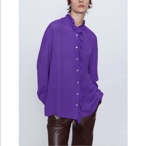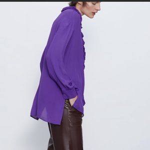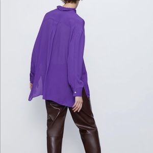 Zara purple flowy Viscose blouse shirt designer clone
