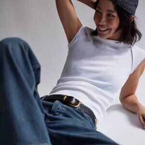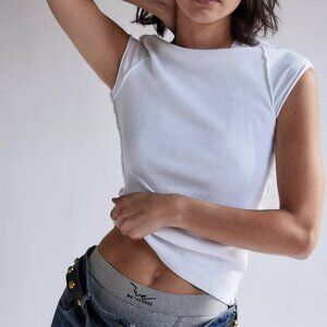 Your new favorite timeless tee from our We The Free collection, featured in a soft, ribbed knit fabrication and slim-fitting silhouette with raised seam detailing and cap-inspired sleeves.