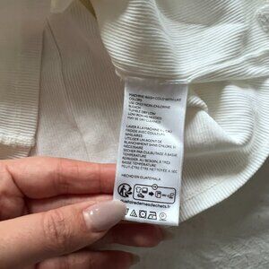 Features: Soft fabrication with a ribbed texture and stretchy feel, crew neckline, cap-inspired sleeves, raised seam detail, minimal design