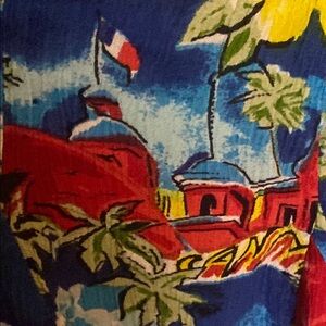 Vibrant women's skirt featuring a lively floral, boats, french flag pattern. Perfect for adding a splash of color to your wardrobe. 21” long. Drawstring elastic waist. Made in India.