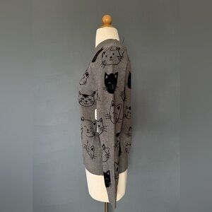 New with tags Calligraphie sweater sold by Anthropologie. Gray knit pullover featuring an allover black cat face print. Soft and cozy with ribbed crew neckline cuffs and hem. Perfect for casual wear or cat lovers.