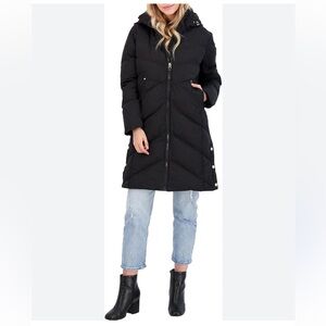 French Connection Women's Quilted Mid-Length Winter Puffer Coat black large