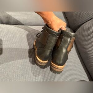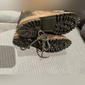 Stylish brown leather lace-up boots with rugged soles. Perfect for outdoor adventures.