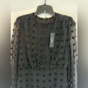 Lulu's Lust or Love Black Embroidered Lace Long Sleeve Dress Women's Size Medium