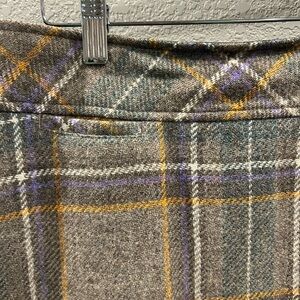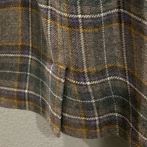 Chic vintage plaid mini skirt by L.L. Bean. Features a stylish blend of gray, brown, and yellow. Perfect for versatile styling. grey/gray, lavender, white, green