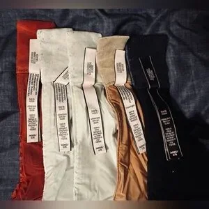 Chic lace bras by Victoria's Secret. Features black, cream, red, and tan hues. Stylish and comfortable. Some wear but have lots of life left