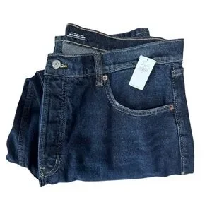 These Old Navy jeans feature a timeless straight-leg cut in a rich blue hue, crafted from durable denim for everyday wear. The medium to heavyweight fabric ensures comfort and longevity, making them a versatile addition to any wardrobe.