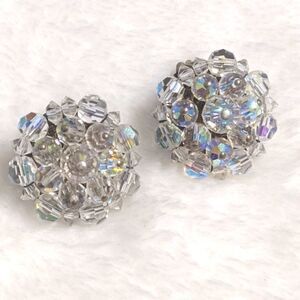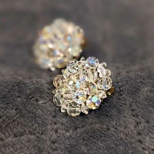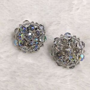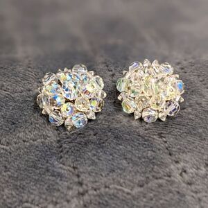 vintage Button style AB Crystal Earrings