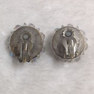 Vintage 1950's Aurora Borealis Crystal Round Button Clip Earrings