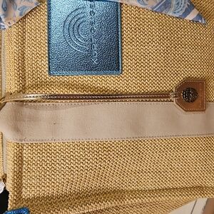NEW Kurt Geiger Large Southbank Zip Top Shopper: Woven Beige W/ Blue Tones