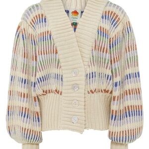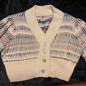 Chic cardigan with vibrant stripes. Features cream base with colorful accents. Button-up front and cozy fit. In very good condition, only worn a handful of times