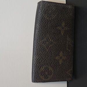Louis Vuitton key holder in tan leather. Features gold hardware. Exterior shows the fading of the monogram. The interior leather is good no tears, needs to be cleaned, condition is good for this key wallet. Please see all pictures