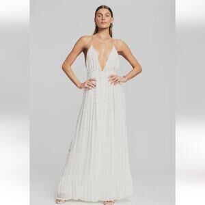 Retrofete Zadie Embellished Silk Chiffon Dress Sleeveless White Large NWT Maxi