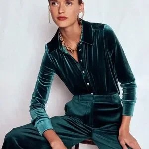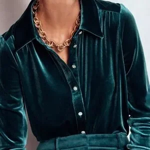 For diary-filled days and nights ahead don't forgo comfort over glamour. This versatile velvet shirt gives both in a luxurious party-ready style. We've added jewelled buttons so you sparkle bright like your conversation.