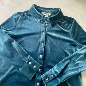 Boden Jewel Button Velvet Shirt, Size 6, NWOT