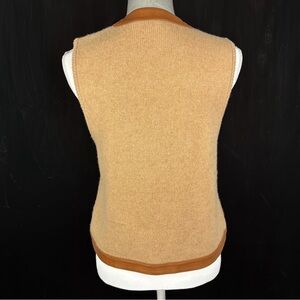 Lauren Ralph Lauren Women M Button Sweater Vest Wool Cashmere Leather Old Money