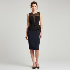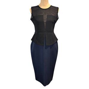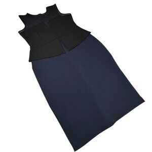 NWOT LRK Peplum Dress Sz 8 Black Navy Knee Length Work Career Office Siren Event