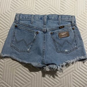 Stylish denim blue women's shorts with a trendy distressed look. Perfect for casual outings.