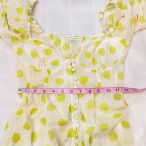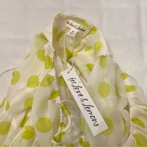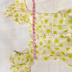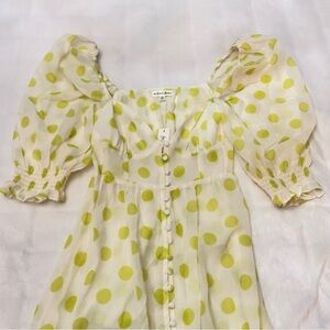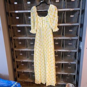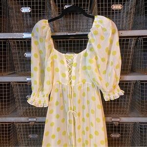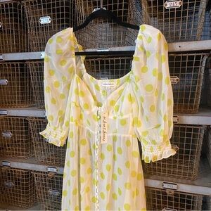 Elegant maxi dress with lemon polka dots. Features puff sleeves and button-down front. Ideal for sunny outings. New with tags!