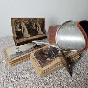 This vintage stereoscope viewer is a unique perspective on the past and is sure to be prized possession for years to come, and it comes with 50 sterscope viewing cards. The steroscope is in fair condition but works fine.