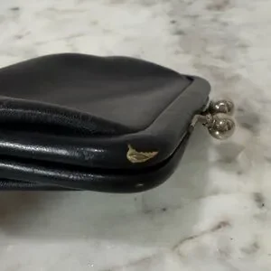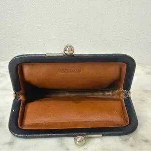 Vintage Coach Kisslock Change Purse Coin Wallet Black Leather 80’s