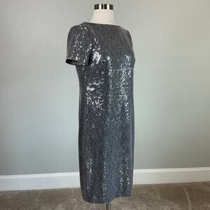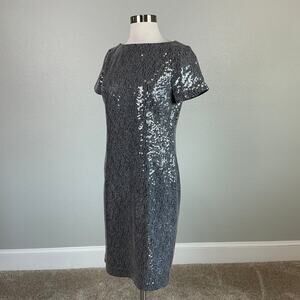 Ralph Lauren Sequined Short Sleeve Boat Neck Sheath Cocktail Dress Gray Size 4