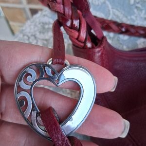 Brighton Barbados zip top hobo bag in the color raspberry. It has a braided handle. The bag is a buttery soft leather with minor signs of use. PLEASE SEE ALL PHOTOS.