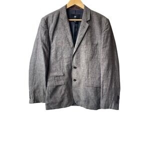 H&M Mens Linen Blazer Size 40R Gray Two Button