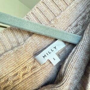Milly Camel Off Shoulder Sweater S Asymmetrical One Sleeve Cable Knit Cropped
