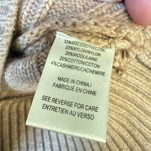 • Material: 33% viscose, 23% nylon, 20% wool, 20% cotton, 4% cashmere (aka a bougie blend)