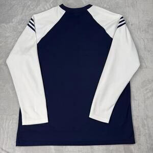 Y2K Adidas Long Sleeve Athletic Shirt White Navy Men's Large Relaxed 3-Stripes