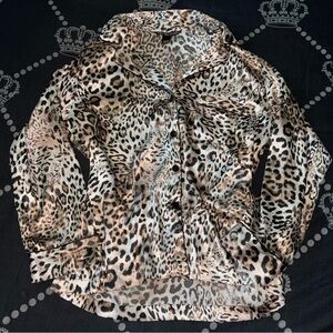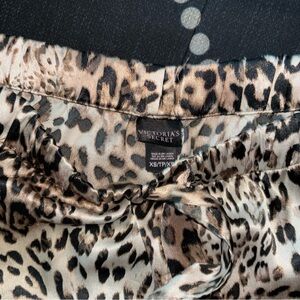Stylish leopard print pajama set. Includes long-sleeve top and pants. Small hole not noticeable. Comfortable and chic. Retail $90+ I also have a pink and white striped set listed, bundle to save $!!!