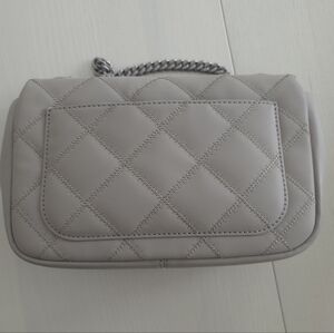 Elegant gray quilted shoulder bag with a stylish chain strap. Perfect for any occasion.