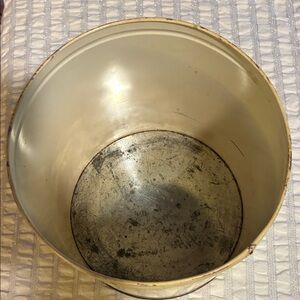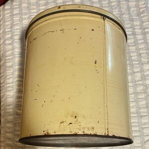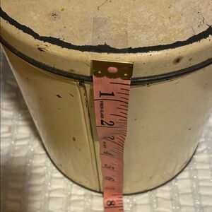 Charming rounded tin canister with a vibrant fruit design. Features oranges, grapes, and strawberries on a cream background. Perfect for kitchen decor or storage. See last picture for measurements