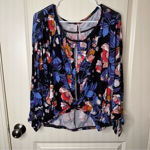 NEW Free People Floral Twist Front Knit Blouse Size L