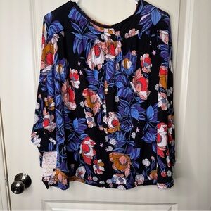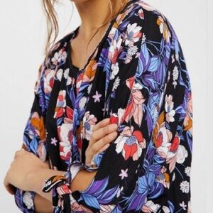 NEW Free People Keepin On Tropical Floral Twist Front Knit Blouse Size L