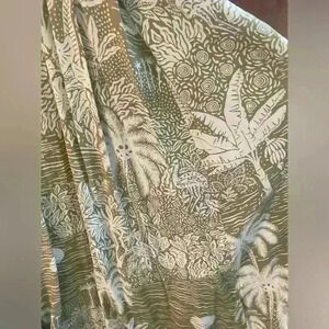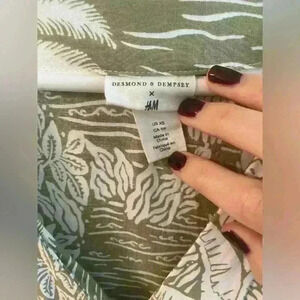 Desmond & Dempsey x H&M Linen Pleated Palm Tree Green White Midi Dress Sz. XS