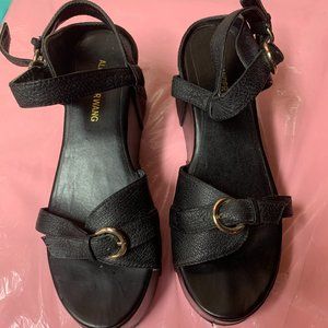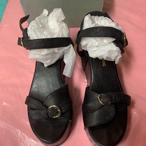 Alexander Wang Black Leather Wedge Platform Buckle Sandal Shoe Size 39