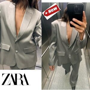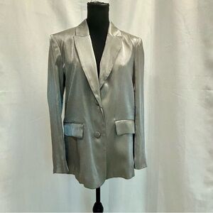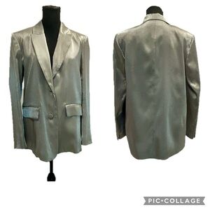 Zara silver metallic shimmer single breasted button front blazer jacket Sz S NWT