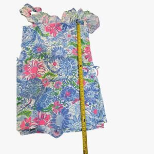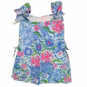 NWT Lilly Pulitzer Zoya Ruffle Shift Style Romper Dress Frenchie Blue Suns Out Size 10 Retail $198 NEW Designer Swimwear Resortwear Vacation Tropical Colorful Floral