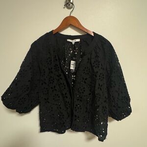 Reposhing this item I purchased from @lillys_corner. It was just a little to small for me. Great condition, missing one button at the top of the blouse.