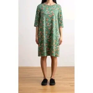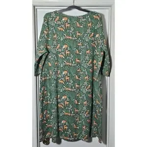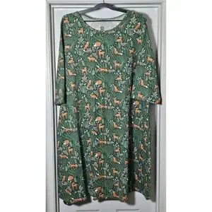 Winter Water Factory Helsinki Deer & Foxes Dress XXXL 3XL Green NWOT 3/4 Sleeve