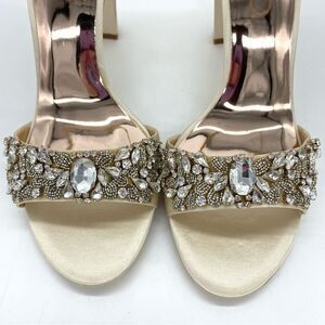 Badgley Mischka Women's Barby Ivory Satin Jeweled Heels New