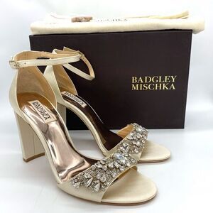 Badgley Mischka Women's Barby Ivory Satin Embellished Heels. New with box, dust bag, heel caps and extra jewels. Size 10. 3.75” heel. Round toe and block heel.