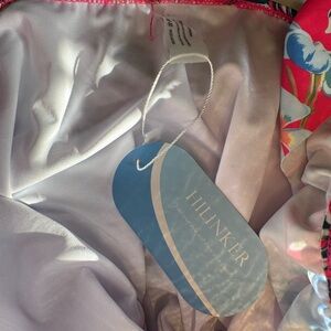 Vibrant one-piece swimsuit with a tropical floral pattern. Features a mix of red, green, and yellow colors. Adjustable ruffle straps. Ruched . Tummy hiding